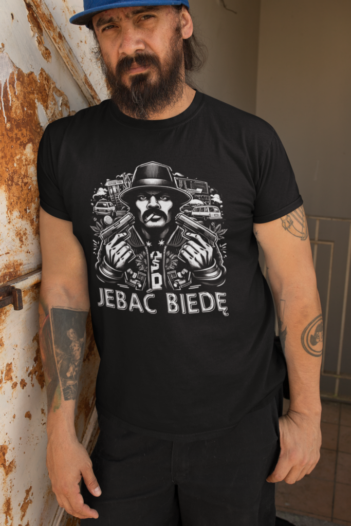 KOSZULKA Z NADRUKIEM GANGSTA STYLE JEBAĆ BIEDĘ