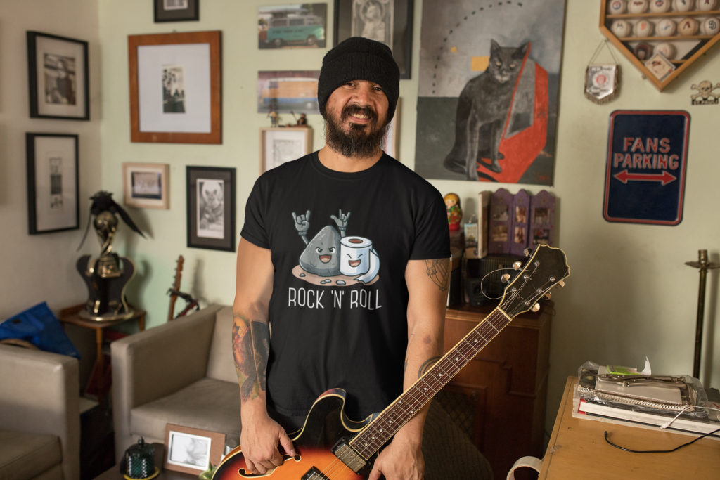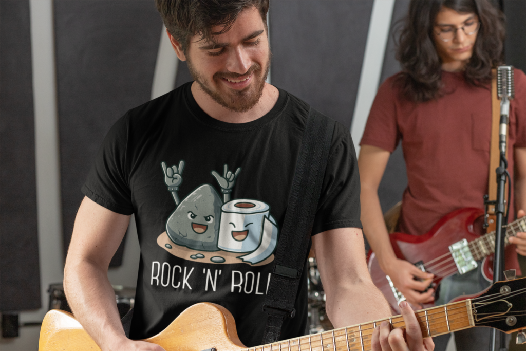 Czarna koszulka męska PREMIUM z zabawnym nadrukiem ROCK 'n' ROLL
